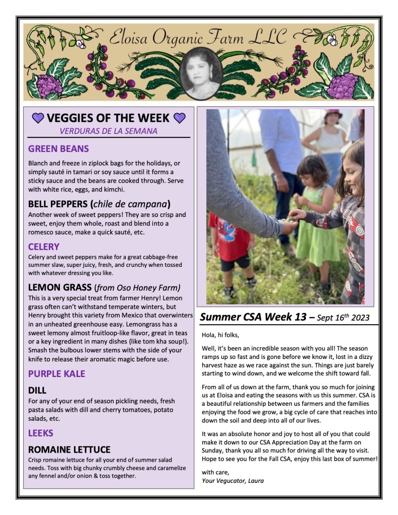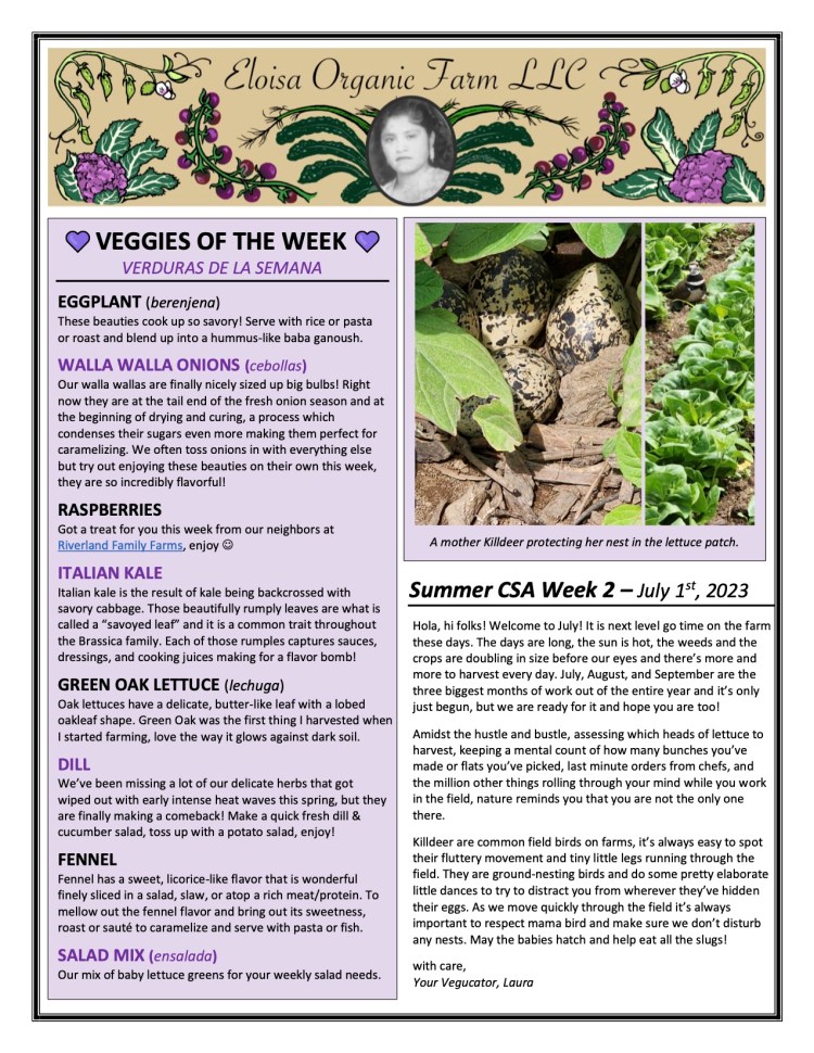 Each week we write CSA Newsletters to help guide our CSA members through the seasons. Each newsletter has produce descriptions, photos and stories from the farm, and recipes to help you eat your way through the seasons. See a selection of some of our past newsletters below.
